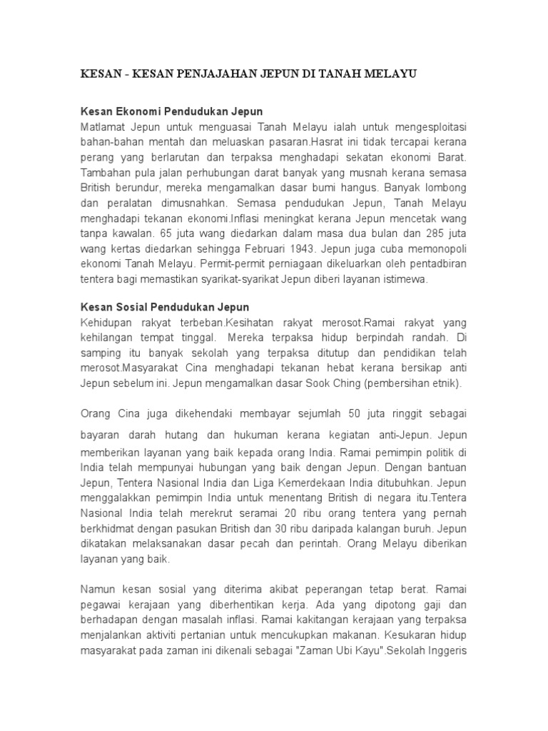 Dari aspek kesinambungan, kemasukan imigran di dunia melayu meninggalkan banyak kesan, sama ada kesan positif mahupun kesan negatif. Hubungan etnik di kalangan masyarakat tanah melayu tidak dapat dipertahankan kerana british berusaha memecahbelahkan kesatuan penduduk tanah melayu. Hal ini kerana syarikat india timur adalah sebuah badan perniagaan yang hanya meletakkan penekanan. Kesan penjajahan british terhadap ekonomi, politik, sosial & agama di tanah melayu. Inisiatif tentang pendidikan di tanah melayu bukan diambil berat oleh kerajaan british, tetapi ianya dibiayai oleh pertubuhan agama dan kumpulan bebas. Download & view kronologi penjajahan british di tanah melayu as pdf for free. Mengimbau sejarah penjajahan kuasa asing di malaysia penjajahan kuasa asing di tanah melayu sebelum kemerdekaan seperti yang kita sedia m. Zaman penjajahan tanah melayu by normurni mohamad 40103 views. March 17, 2016, 2:01 a.m. Kewujudan masyarakat seranipengenalan tulisan rumikewujudan perkataan asal dari bahasa portugis. Oleh sebab tanah melayu adalah laluan perdagangan yang baik dan strategik serta mempunyai potensi ekonomi untuk berkembang, maka pihak british telah memutuskan untuk menduduki dan kesan penjajahan british. Imperialisme british di india melalui shti sehingga diambil oleh kerajaan british selepas 1857. Sewaktu tempoh penjajahan, british telah membuat dasar pecah dan perintah di tanah melayu dan menyebabkan masyarakat yang terdiri daripada pelbagai ras dan kaum berpecah dan dimanipulasikan mengikut kepentingan 2.2 kesan negatif :