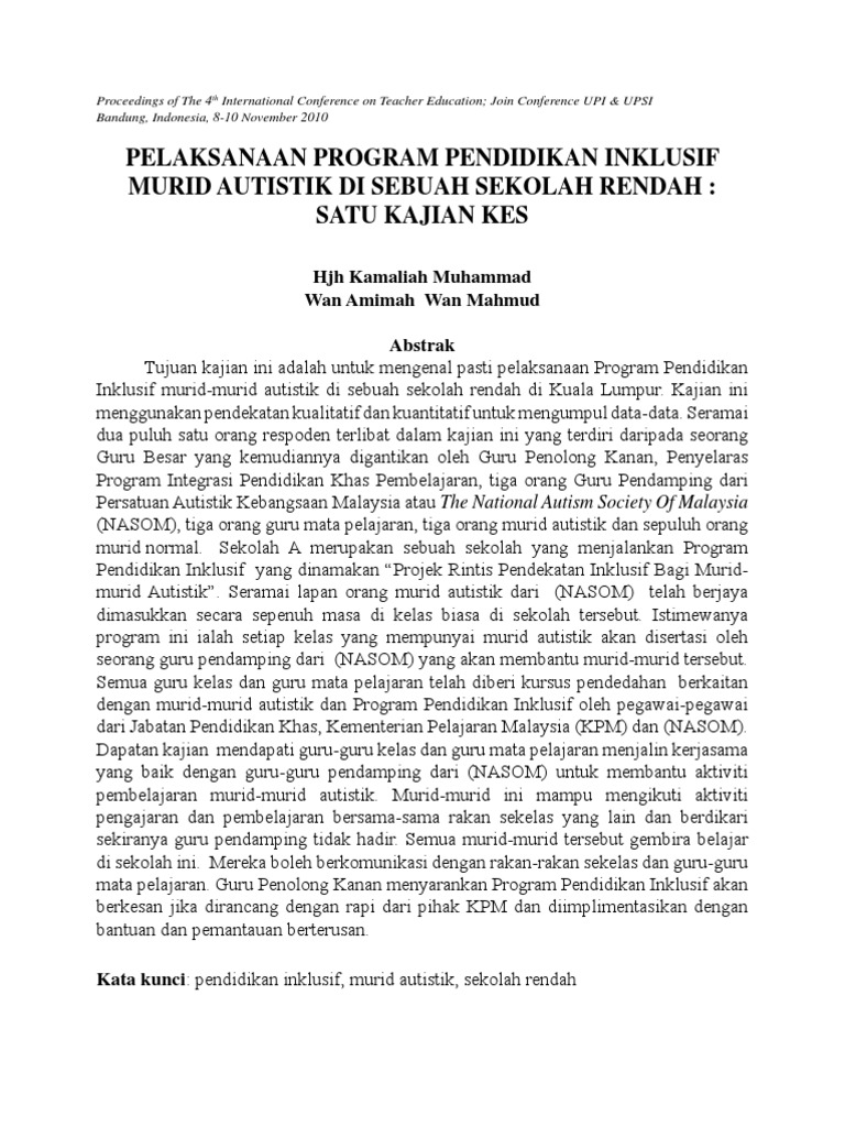 Pendidikan inklusif adalah pendidikan yang terbuka dan ramah terhadap pembelajaran dengan mengedepankan tindakan menghargai dan merangkul perbedaan. Последние твиты от amalan pendidikan inklusif (@apiukm2021). Kesan terhadap aspirasi keusahawanan pelajar. Buku ini memberi pendedahan kepada pembaca tentang pendidikan inklusif di malaysia dan di luar negara. Video ini memperlihatkan gambaran pelaksanaan pembelajaran di kelas yang memfasilitasi siswa abk dan siswa nonabk.