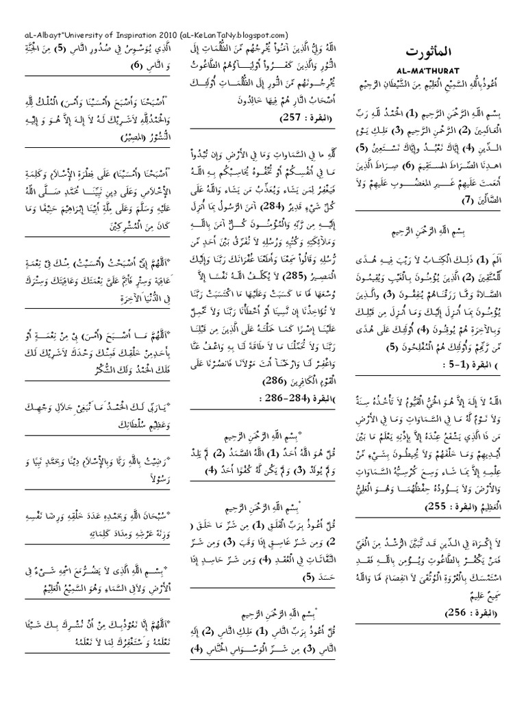 Savesave booklet al mathurat.pdf for later. Al mathurat, al ma'tsurat, morning azkar, afternoon azkar, morning du'a, afternoon du'a, wirid pagi, wirid petang, hasan al banna, islam, quran, morning invocation, evening invocation, hisn al muslim, hisnul muslim. Al mathurat, al ma'tsurat, morning azkar, afternoon azkar, morning du'a, afternoon du'a, wirid pagi, wirid petang, hasan al banna, islam, quran, morning invocation, evening invocation, hisn al muslim, hisnul muslim. Al mathurat app consist of al mathurat kubro and sughro, completed with transliteration and translation in english, bahasa indonesia, and bahasa malaysia. To know more about the company/developer, visit labkomif uin bandung website who developed it. Al mathurat imam shaheed hasan al banna. This a completely free, fully functional app which. Pdf koleksi doa zikir mathurat. Download al mathurat sughra and enjoy it on your iphone. Al ma'thurat with translated malay language. Membaca surat yasin dan tahlil menjadi lebih … Mathurat sughra, mathurat sughra pagi, mathurat sughra petang, mathurat sughra jakim, mathurat sughra kubra, mathurat sughra mp3, mathurat sughra pdf al ma'thurat with translated malay language. 10.04.2018 · al mathurat by jakim malaysia almathurat kubra sughra.